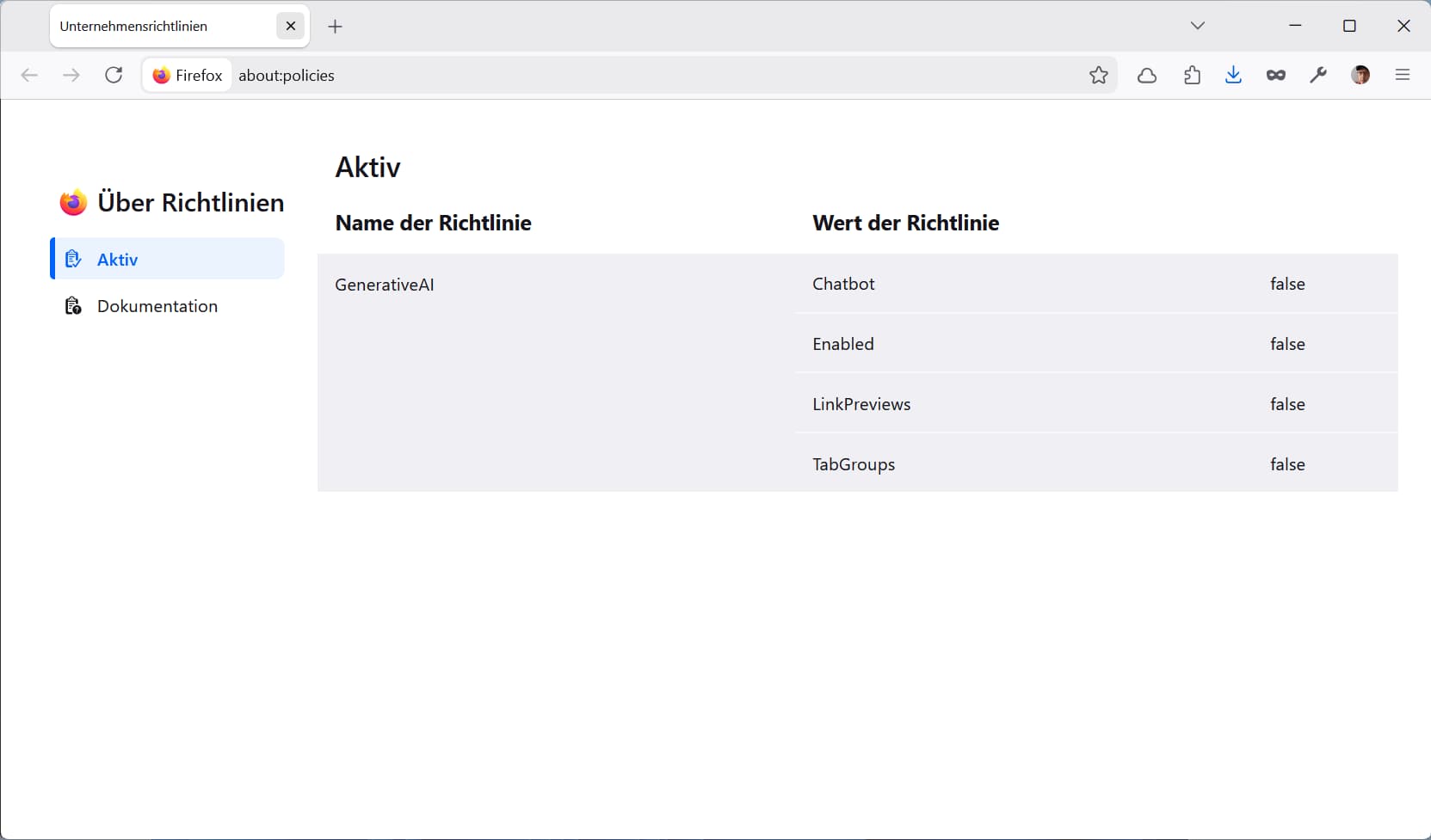 Jetzt bin ich im Camp-Firefox auf eine bessere Möglichkeit gestoßen. KI lässt sich wohl auch per Unternehmensrichtlinie entfernen. Sören Hentzschel erklärt das jedenfalls in dem Thread.